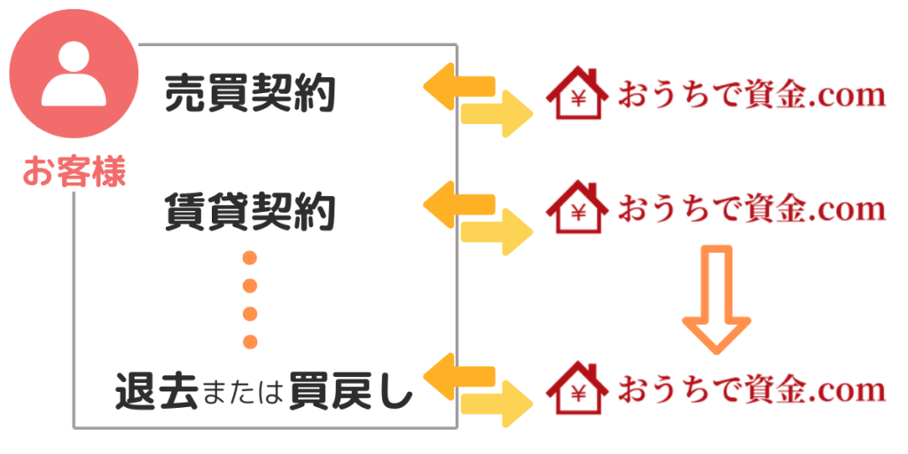 『おうちで資金.com』のリースバックは、自社でご自宅を買取します。